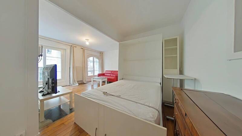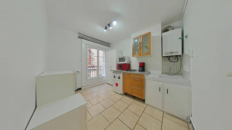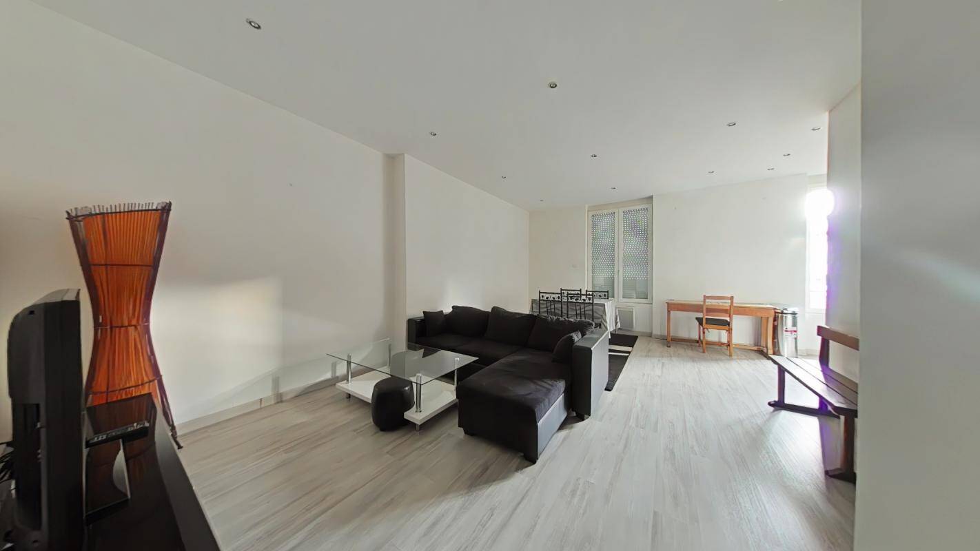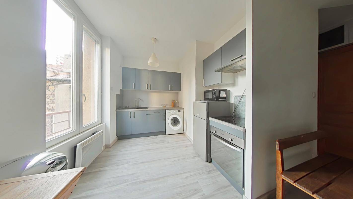 SAINT-ETIENNE - HYPER-CENTRE - 5 RUE SAINT JEAN - F1 meublé et rénové de 37.75m² situé au 1er étage d'un immeuble sécurisé comprenant une entrée, une cuisine équipée, une pièce de vie avec un espace salon et un coin nuit avec un lit escamotable, une salle d'eau avec douche, meuble vasque, lave-linge et WC - Chauffage et eau chaude individuels au gaz - Interphone