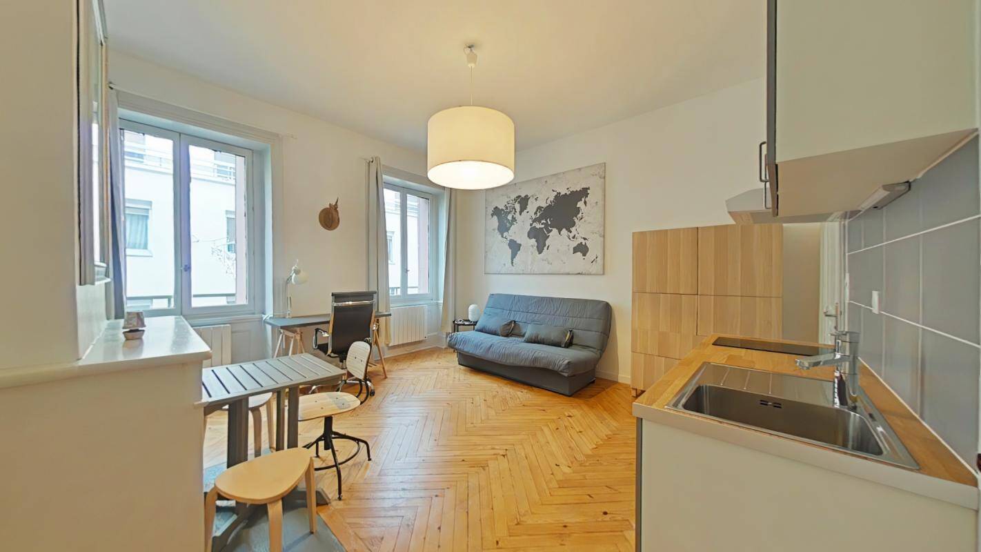 SAINT-ETIENNE - JEAN JAURES - 13 RUE PRAIRE - Dans un immeuble sécurisé et idéalement situé en plein centre ville, joli studio meublé et rénové de 25.78 m² au 2ème étage, comprenant : une cuisine équipée ouverte sur la pièce de vie, une salle d'eau (douche, vasque et WC) - Chauffage électrique par radiateurs à fluide caloporteur et eau chaude par cumulus - Interphone - Les informations sur les risques auxquels ce bien est exposé sont disponibles sur le site Géorisques : www.georisques.gouv.fr