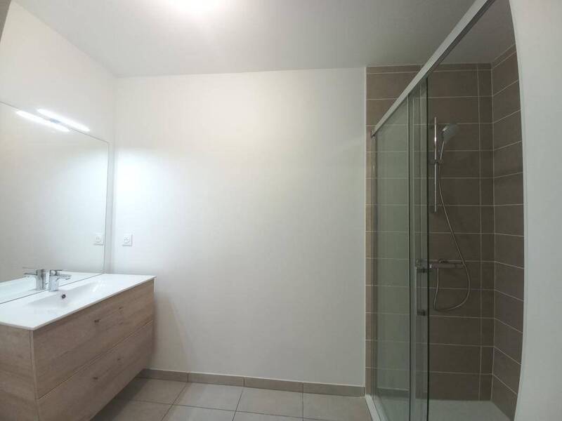 Dans une résidence neuve appartement T2 de 48 m² en rez de jardin, il se décompose d'une pièce à vivre avec cuisine aménagée et équipée (Four, plaque, hotte), donnant sur une terrasse - jardin de 50m², une salle d'eau avec douche, une chambre et un wc séparé. Place de parking compris dans la location. Chauffage individuel au gaz par le sol. PLUS DE RENSEIGNEMENTS IMMO DE FRANCE VEAUCHE 04.77.54.61.71
