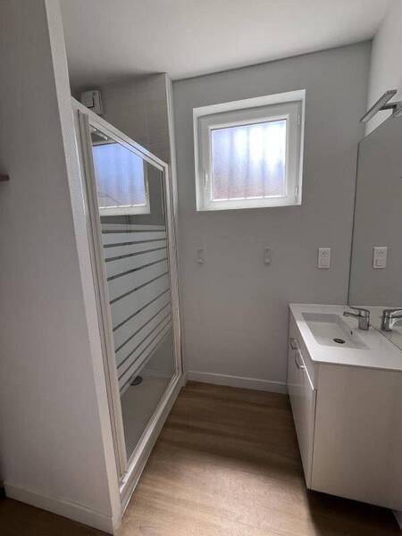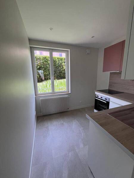 REF 10248 - RESIDENCE LE SAINTONGE - Très bel F3 bis en RDC entièrement refait à neuf comprenant un hall d'entrée, une cuisine meublée et équipée (four, plaque, hotte, lave-vaisselle), un beau séjour lumineux, un bureau, un grand couloir avec placards, deux chambres, et une salle d'eau. Une cave. Chauffage individuel au gaz