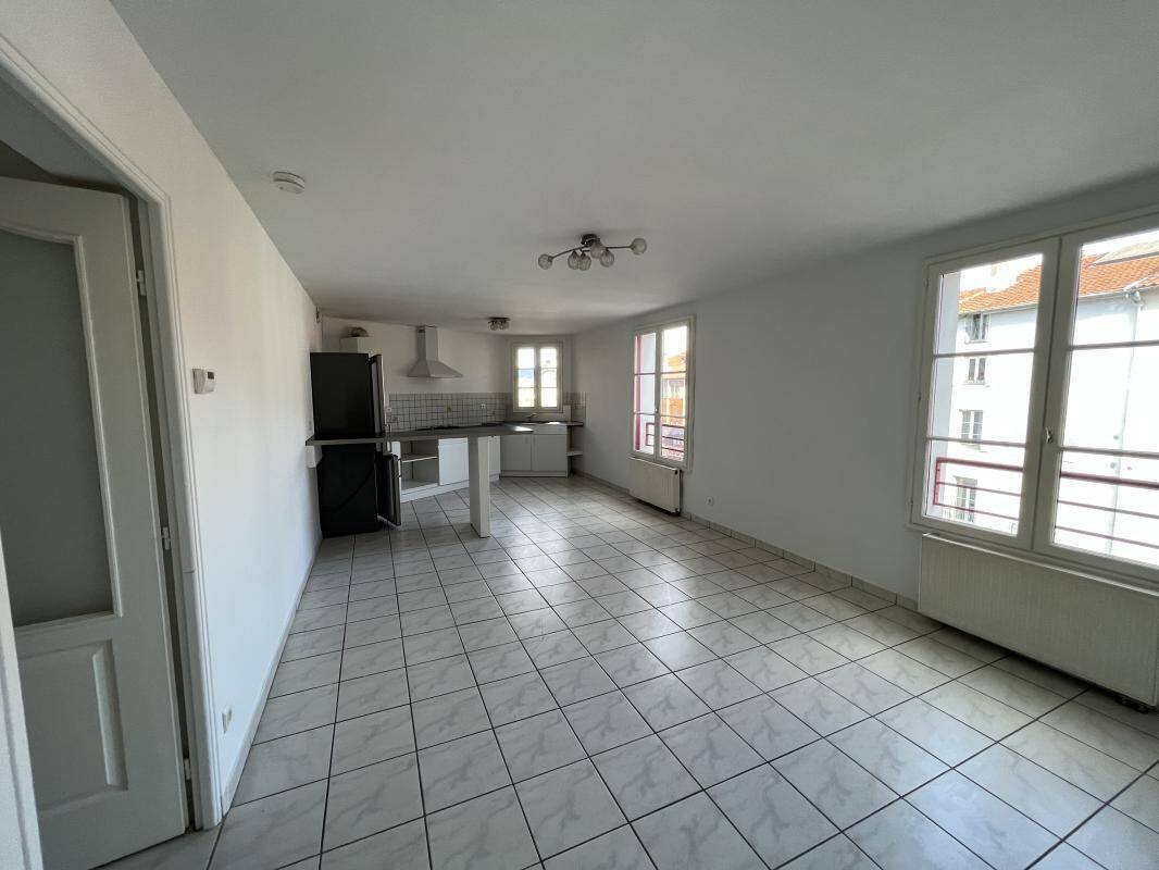 REF 9447 - 34 BD DE LA REPUBLIQUE - F3/F4 au 6ème étage gauche traversant comprenant : un hall d'entrée avec placard, une cuisine neuve meublée et équipée (four, plaque, hotte) avec cellier attenant, deux chambres dont une avec placard, un séjour et un salon avec un balcon donnant sur la vieille ville, une salle de bains douche et un wc. Chauffage individuel au gaz. Une cave N°15. Rénovation récente.